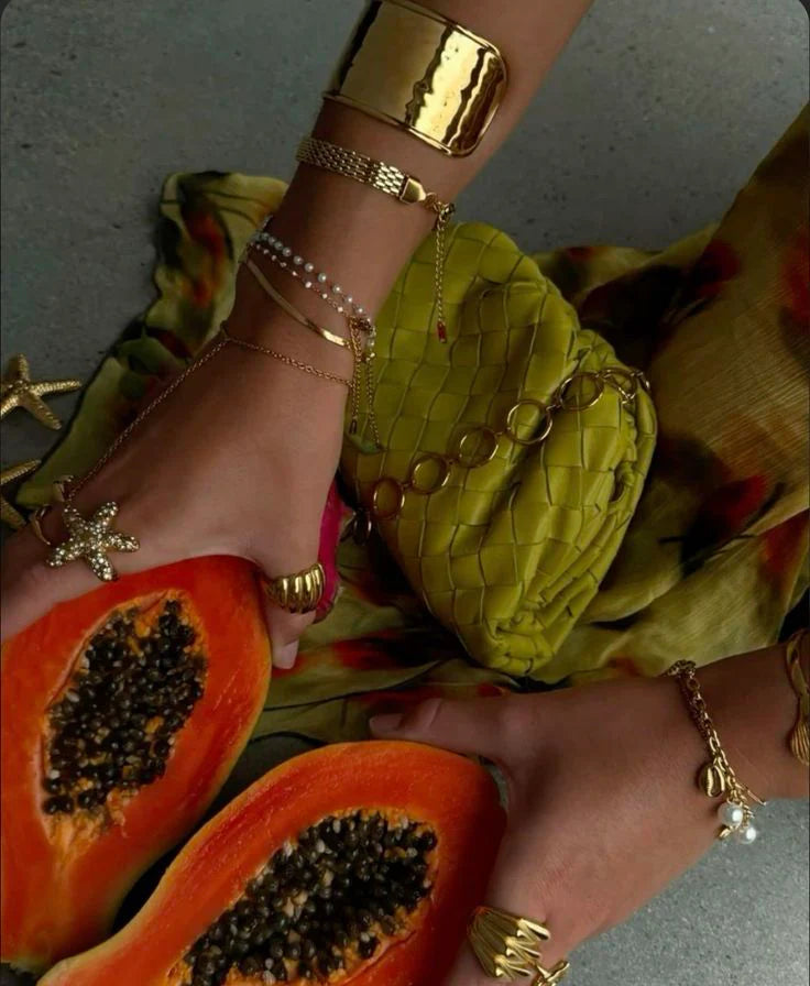 Jedes Stück entstoot im Stillle wird mit de Hand gformt mit Sinn und Anmut. Us widerstandsfähigem Edelstahl gmacht und mit 18 Karat Premiumgold überzoge, tragt jedes Design e dauerhafi Stärke unter sim feine Glanz. Es isch wasserdiicht und anlaugbeständig gmacht zum sini ruigi Schiins Jahr für Jahr i jedem Moment und jedem Tag z bewahre.